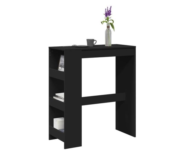 fekete szerelt fa tárolórekeszes bárasztal 90 x 40 x 103,5 cm