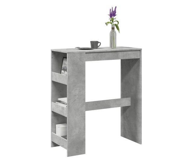 betonszürke szerelt fa tárolórekeszes bárasztal 90x40x103,5 cm