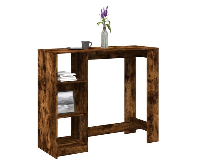füstös tölgy színű szerelt fa bárasztal polccal 124x46x103,5 cm
