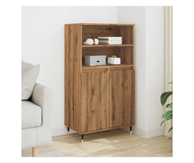 kézműves tölgy színű szerelt fa magasszekrény 60 x 36 x 110 cm