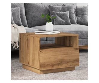 kézműves tölgyszínű dohányzóasztal LED-lámpákkal 50x49x40 cm