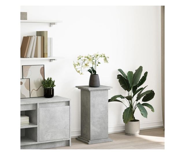 betonszürke szerelt fa bemutatóállvány tárolóval 31x30x60 cm