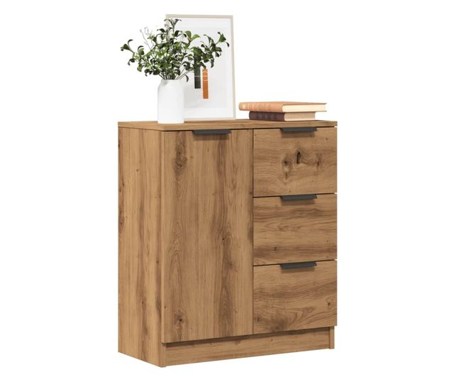 kézműves tölgy színű szerelt fa tálalószekrény 60 x 30 x 70 cm
