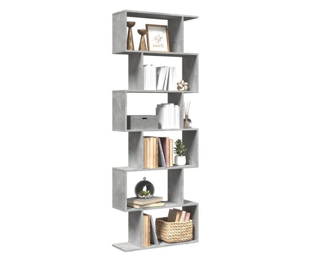 6 szintes betonszürke fa térelválasztó könyvespolc 70x24x193 cm