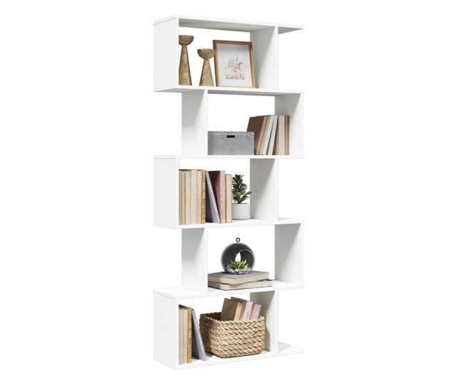 5 szintes fehér szerelt fa elválasztó könyvespolc 70x24x161 cm