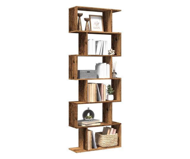 6 szintes antik fa színű fa elválasztó könyvespolc 70x24x193 cm
