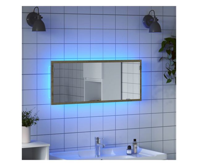 sonoma tölgy szerelt fa LED-es fürdőszobatükör 100x8,5x37 cm