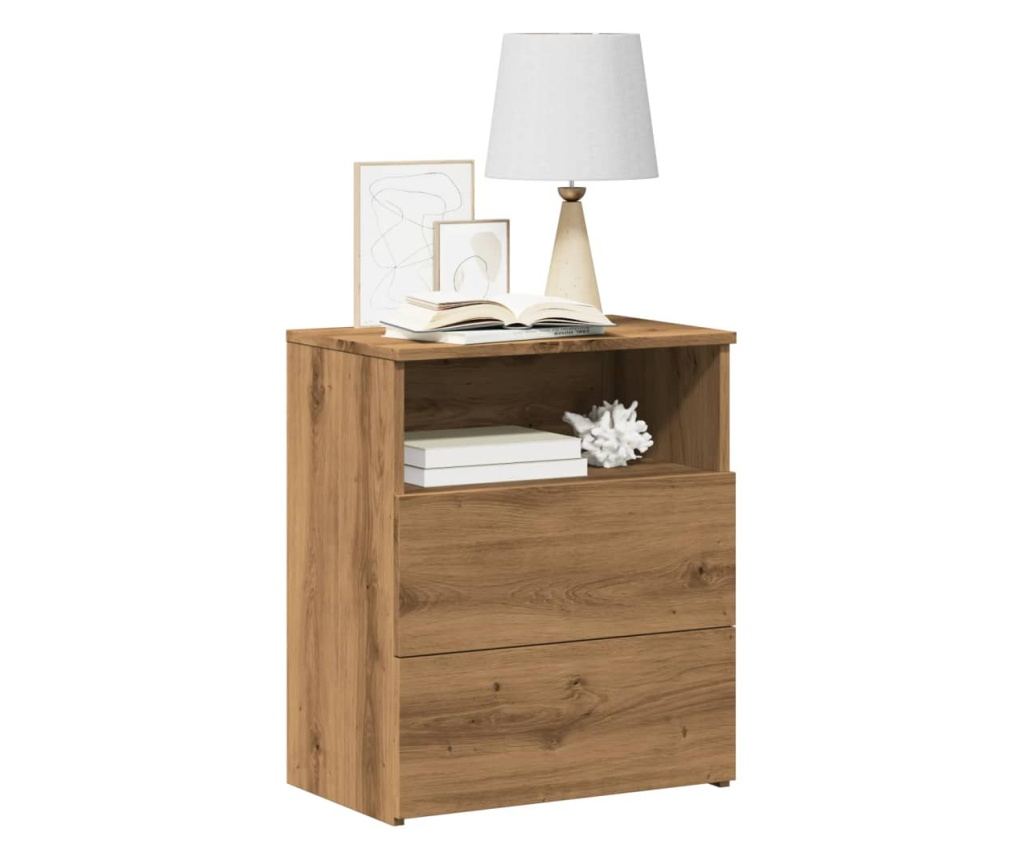 - Bőséges tárolóhely: Az éjjeliszekrény 2 fiókkal és 1 polccal rendelkezik, ami bőséges tárolóhelyet biztosít a különböző napi szükségleti cikkek rendezett és könnyen elérhető tárolásához.