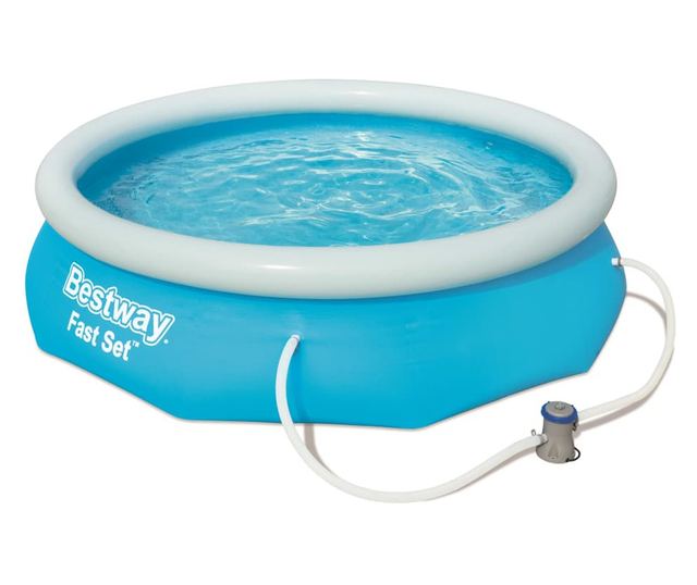 Ez a felfújható szélű Bestway Fast Set 57270 medence nagyon kényelmes megoldást jelent azok számára, akik nyáron kertjükben szeretnének úszni.