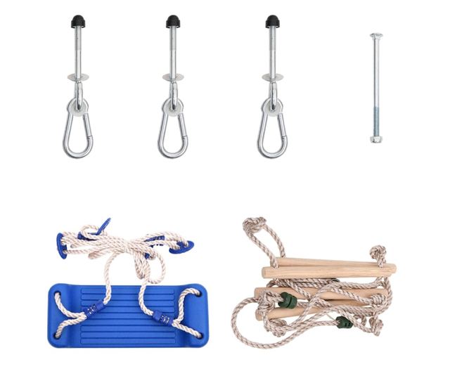 - Praktikus kialakítás: Szabadon összeszerelheti a kerti hintát, a kötéllétrát és a fogantyúkat a játszótoronnyal, hogy saját játékteret alakítson ki, vagy, hogy felfrissítse a meglévő játékkészlet részeit.