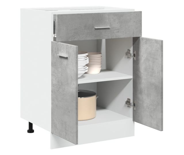 - Bőséges tárolóhely: A szekrény 1 fiókkal és 2 rekesszel rendelkezik, melyek elegendő helyet kínálnak edények, tányérok, fazekak és egyéb konyhai kellékek számára.