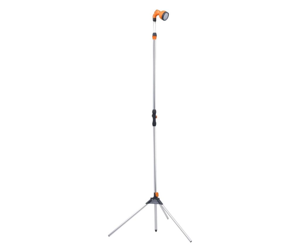 A háromlábú állvány könnyedén felállítható bármilyen kültéri környezetben. Alumíniumrúddal és nagy méretű ABS zuhanyfejjel rendelkezik. Időjárásálló és könnyű, így könnyen mozgatható. A kültéri zuhany a legtöbb csatlakozórendszerre ráköthető.