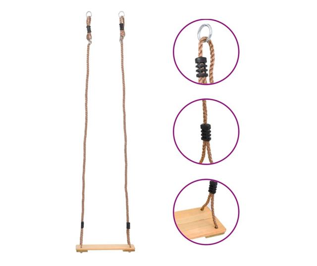 Ez a fahinta tömör fenyőfából készült, így masszív és stabil. A deszka széles, tehát elegendő helyet kínál a gyerekeinek. Ezenkívül a magasság a gyermekek preferenciáinak megfelelően állítható. A hinta biztonságosabb két faléccel felszerelve az ülés két oldalán. Minden állítható tartókötélnek van egy összekötő része a hinta szilárd rögzítéséhez, valamint négy pont egyenlő húzóerőt biztosít az egyensúly fenntartása és a biztonság érdekében.