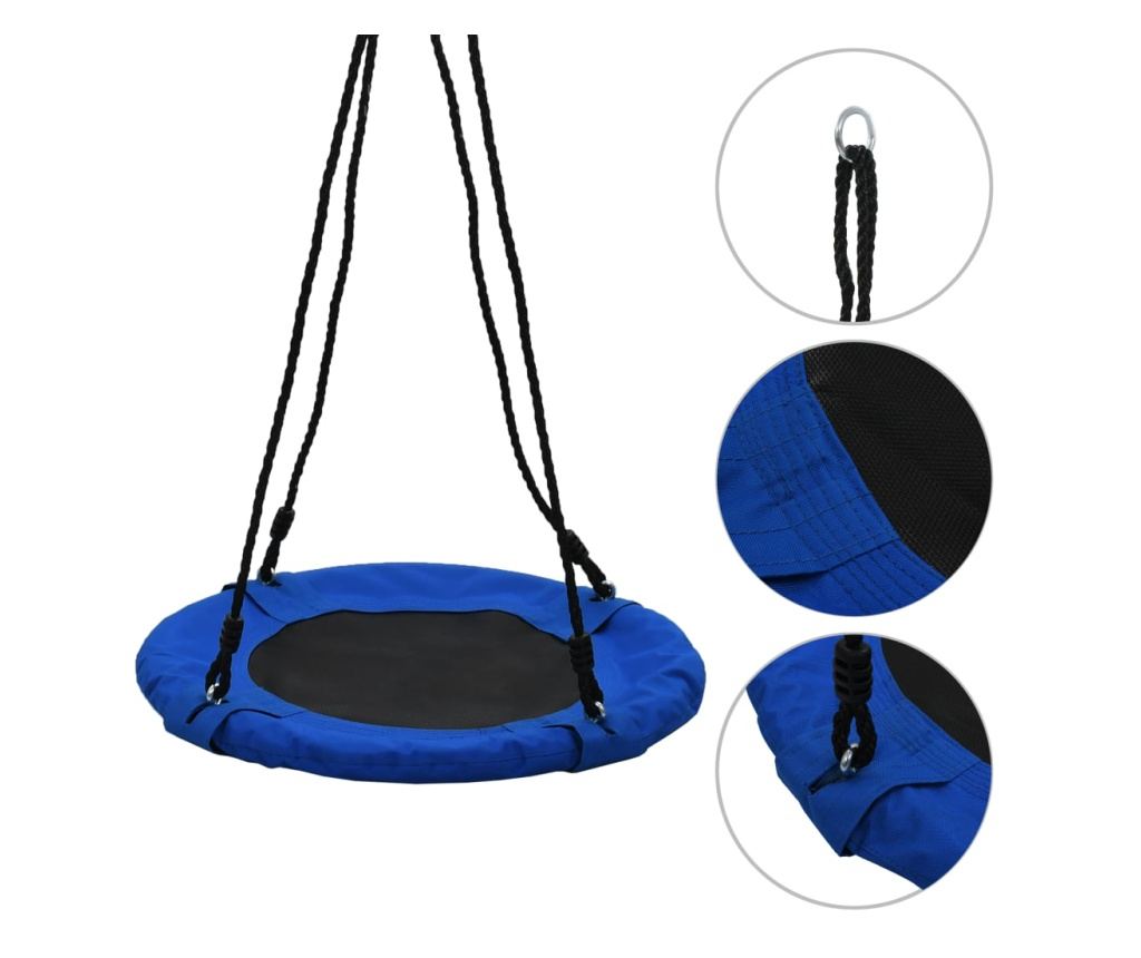 Ez az Oxford szövetből, PP szőnyegből és PE kötélből készült hinta tartós és időjárásálló, ezáltal tökéletesen alkalmas kültéri használatra. Ezeníkvül a felfüggesztő kötelek a kampók segítségével állíthatóak, így ideális lehet különböző életkorú gyerekek számára.