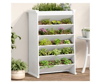 - 6 szintes kialakítás: Ez az állvány tágas felső ültetőládával és 5 derékszögű vályúval rendelkezik különböző szinteken, így könnyű hozzáférést biztosít, és maximalizálja a napfényt a növények számára.