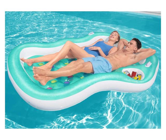 Ez a Bestway kétszemélyes társalgó tökéletes helyet kínál az órákig tartó kikapcsolódásra a vízben.