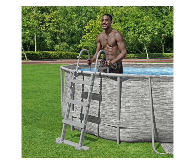 Ez a Bestway Flowclear 4 fokos medencelétra talajszint feletti medencékhez készült; segítségükkel az úszók kényelmesen és biztonságosan szállhatnak be és ki a medencéből.