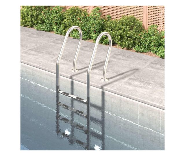 - Tartós anyag: Ez a medencelétra 304-es rozsdamentes acélból készült, amely erős és tartós a hosszú távú használatra. Jó a korrózió- és rozsdaállósága is.