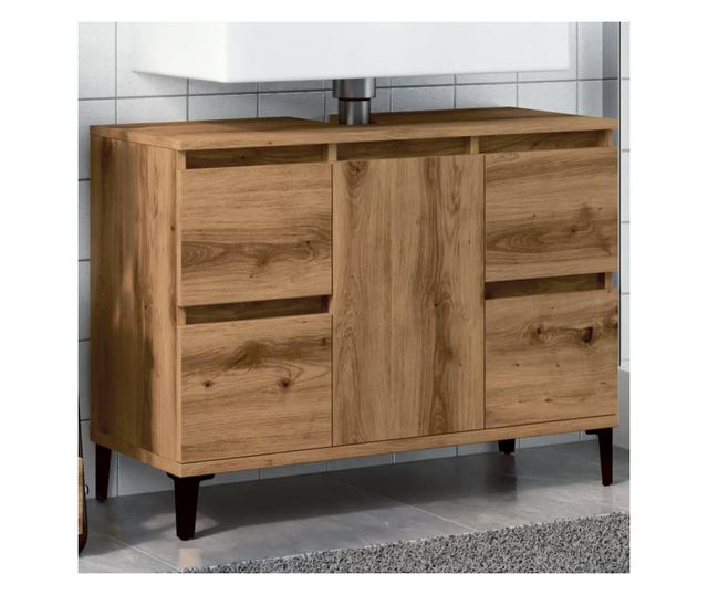 - Bőséges tárolóhely: A fürdőszobai mosdószekrény 4 fiókkal és 1 ajtós rekesszel rendelkezik, amelyek különféle tárolási lehetőségeket és extra helyet kínálnak a fürdőszobában lévő tárgyak tárolására. A fürdőszobaszekrény teteje ideális a mosdókagyló elhelyezésére.