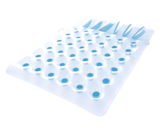 Ez a strapabíró lebegő gumimatrac kiváló minőségű vynilből készült és elég szilárd ahhoz, hogy Önt és társát is a vízfelszín felett tartsa. 2 légkamrával és egy kényelmes beépített párnával lett ellátva. A gumimatrac masszív hengeres szerkezete által létrehozott zsebek alkalmasak frissítők és apróbb tárgyak tárolására. Ez a matrac gyorsan felfújható és leereszthető.