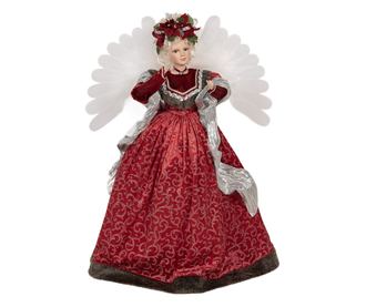 Textil és műgyanta angyalka LED világítással és karácsonyi dallamokkal.