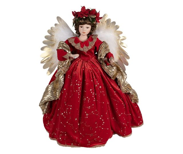 Piros és arany színű angyal figura textilből, 50x30x65 cm