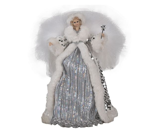 Ezüstfehér textil angyal figura 20x15x28 cm