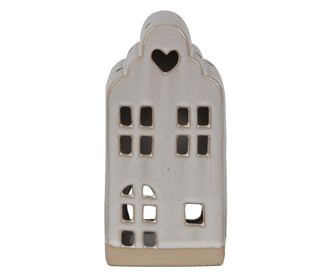 Kerámia ház gyertyatartó bézs 9x8x18 cm