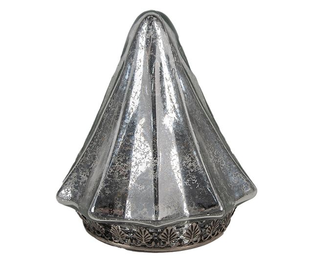 Ezüstszínű fém üveg karácsonyfa LED-del 14x16 cm