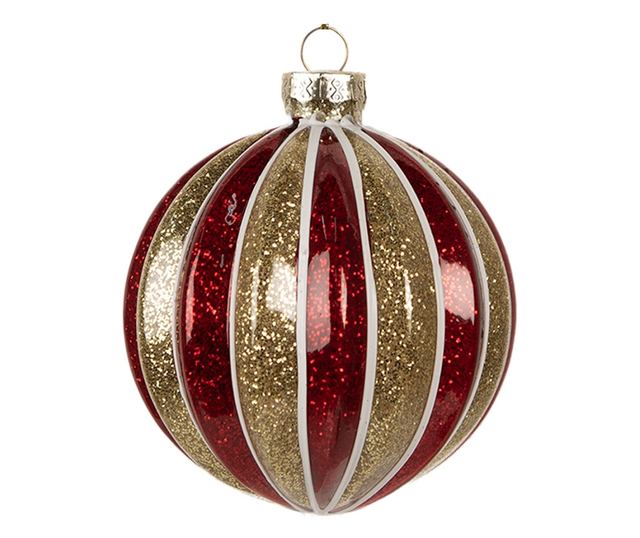 12 darabos karácsonyfadísz készlet, piros és arany üveg, 10x10 cm