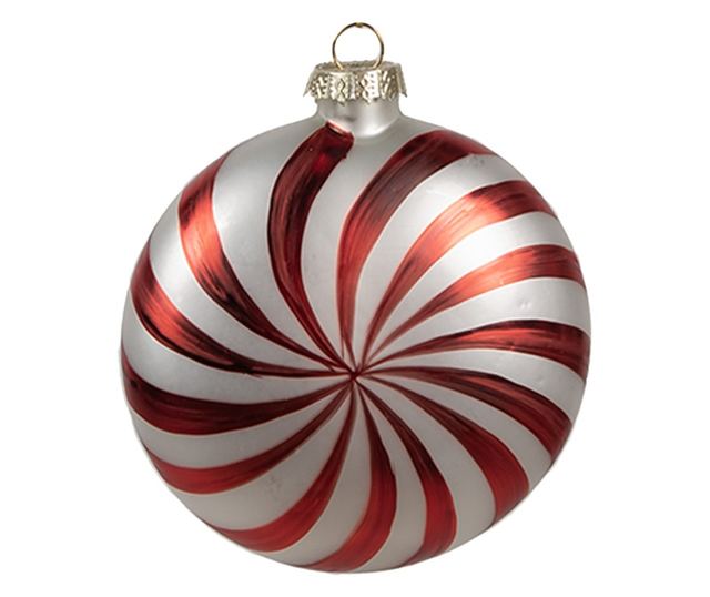 Ez a szett 6 db klasszikus stílusú üveg karácsonyi díszt tartalmaz. Minden dísz 8 cm hosszú, 3 cm széles és 8 cm magas. A díszek pirosak és fehérek.