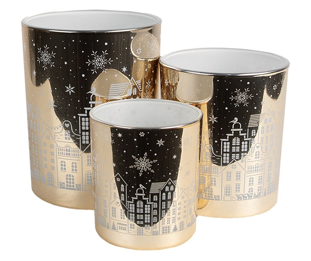 3 darabos karácsonyi gyertyatartó szett, fehér és arany üveg - Vivre