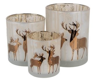 3 darabos karácsonyi gyertyatartó szett, üveg, arany és fehér, 7x8 cm, 9x10 cm, 10x12 cm