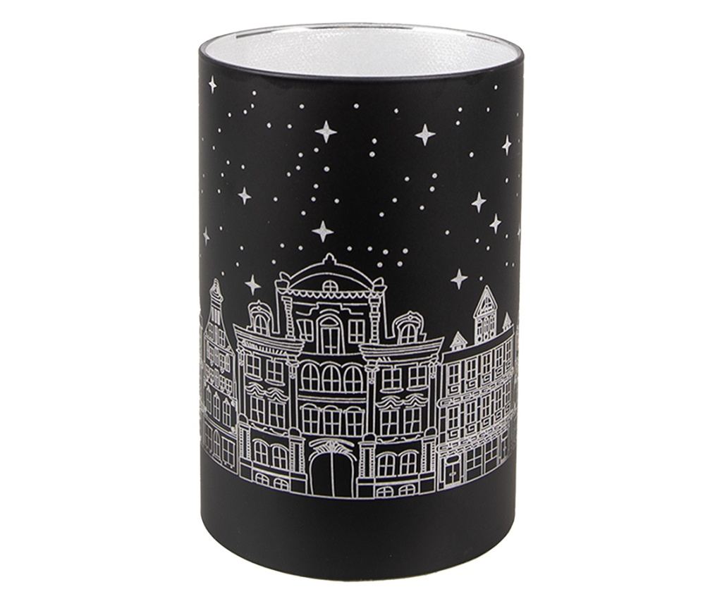 Fehér és fekete üveg karácsonyi gyertya LED-del 9x16 cm