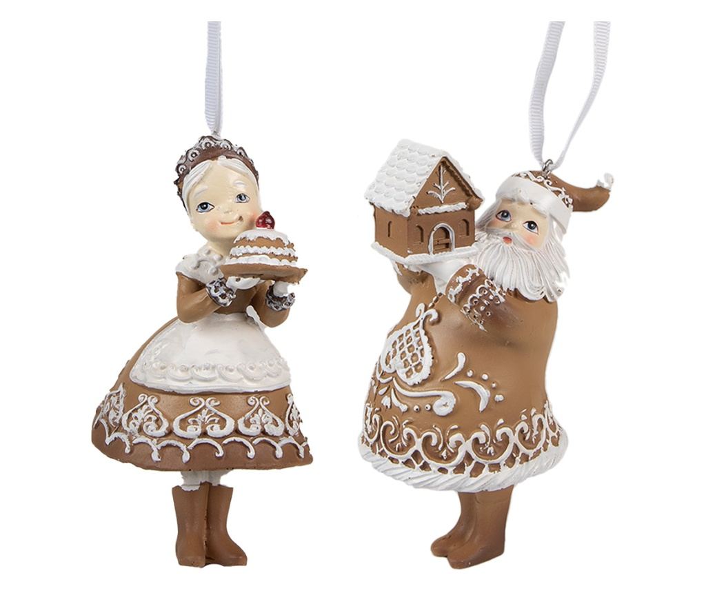 2 darabos karácsonyfa dísz szett, fehér és barna műgyanta, 9x7x13 cm, 8x6x13 cm