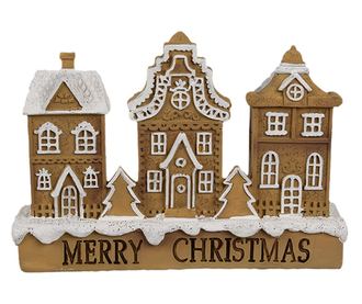 Mézeskalács házikó, műgyanta, barna, fehér, 13x4x10 cm