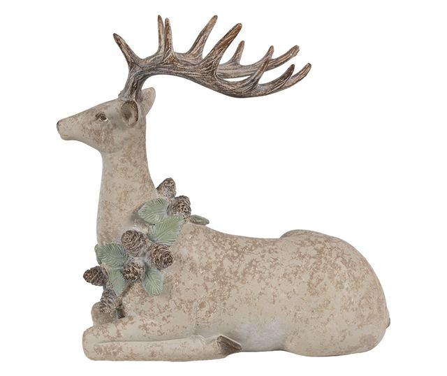 Barna-zöld polystone rénszarvas figura 31x16x29 cm