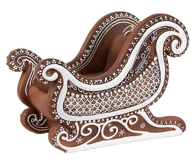 Dekoratív karácsonyi szán, polirezin, barna/fehér, 20x12x15 cm