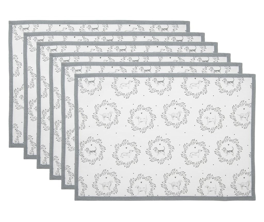 6 db fehér és szürke kiskutya mintás pamut alátét 48x33 cm - Vivre