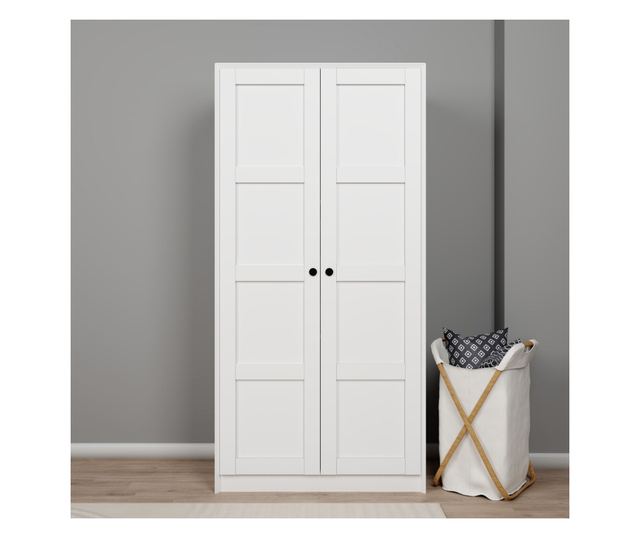 Elegáns kialakításával és bőséges tárolóhelyével ez a szekrény tökéletes ruhái, cipői és kiegészítői rendezett tárolására. A számos polc rengeteg helyet biztosít minden holmija számára, míg a falhoz rögzíthető opció stabilitást és biztonságot garantál.