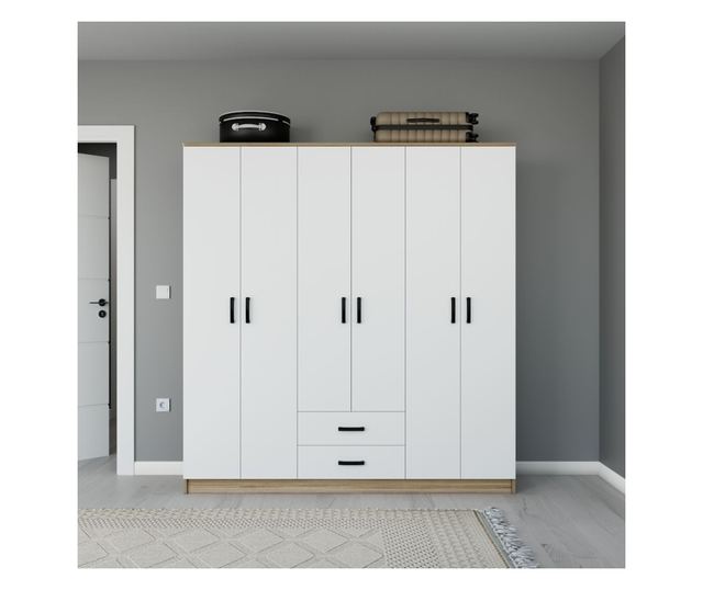 180 cm szélességgel, 190 cm magassággal és 45 cm mélységgel ez a szekrény rengeteg helyet kínál minden ruhája, cipője és kiegészítője tárolására. A számos polc bőséges tárolási lehetőséget biztosít, lehetővé téve, hogy mindent rendben és tisztán tartson.