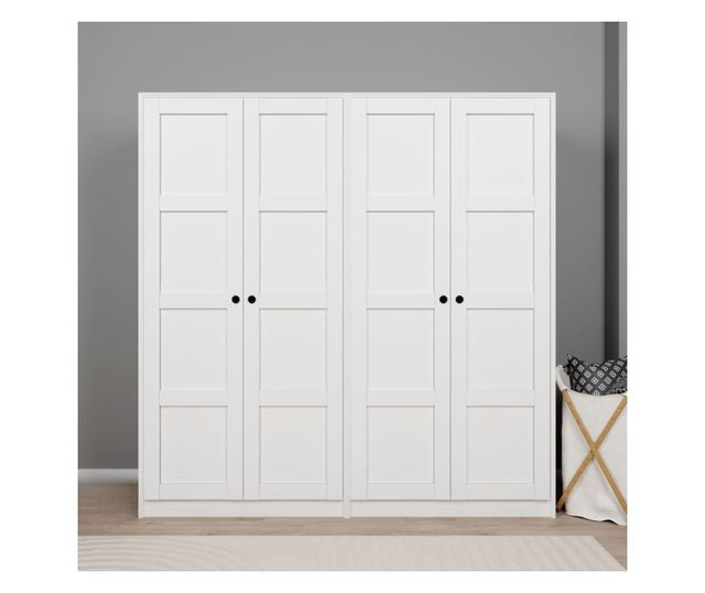 Elegáns kialakításával és bőséges tárolóhelyével ez a szekrény tökéletes kiegészítője bármely hálószobának vagy öltözőnek. A tiszta fehér szín eleganciát kölcsönöz bármilyen dekorációnak, míg a számos polc rengeteg helyet biztosít minden ruhájának, cipőjének és kiegészítőjének.