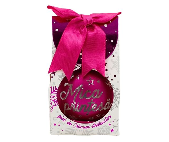 Könnyű és tartós műanyagból készült gömb matt fukszia bevonattal rendelkezik, amely tökéletesen kiegészíti az ezüst "Kis Hercegnő" feliratot, valamint a hópelyhek és csillagok díszítéseit. Belül egy meleg LED világítja meg a kivágott mintát, látványos árnyékokat vetítve a környező felületekre – egy igazi miniatűr téli vetítés.