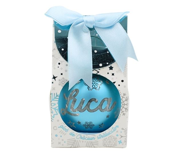 Karácsonyi gömb, LED-del, kék színű, "Luca" névvel