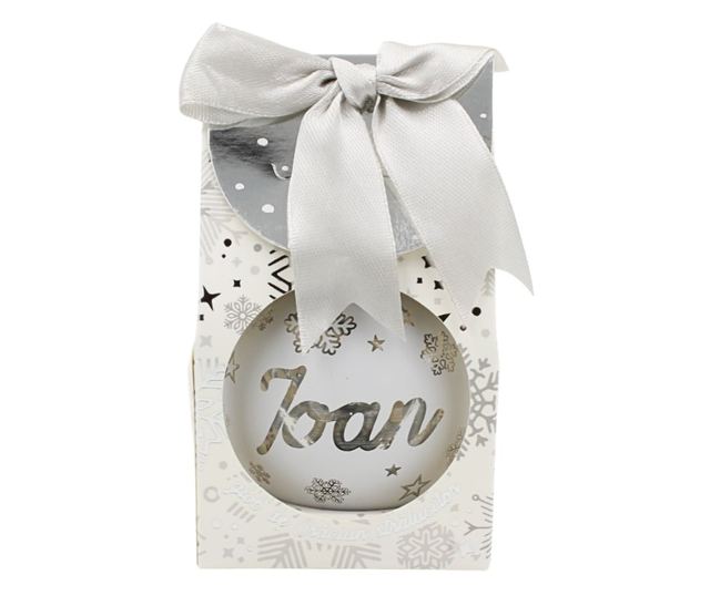 Karácsonyi gömb, LED-del, ezüst színű, "Ioan" névvel