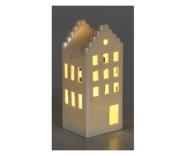Dekoratív kerámia ház beépített LED fényekkel. Mérete 6,5 cm x 5,5 cm x 15 cm.
