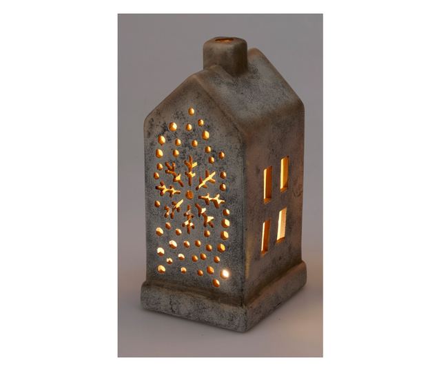 Kerámia ház dísz LED fénnyel. Mérete 10x10x20 cm. Termékkód: 87215747.