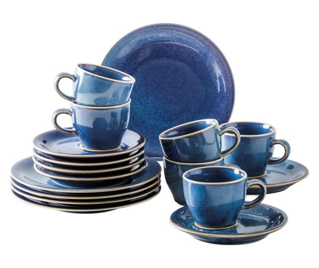 Porcelán kávéskészlet, 18 darabos, 6 személyes, Kahla, Homestyle Atlantic Blue