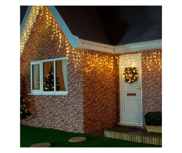 Karácsonyi installáció, Nevermore®, Villogó tornyocskák, Rojtos, Összeköthető, 20 m, 480 LED, Meleg fehér