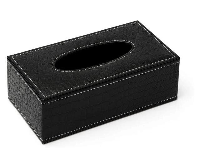 Alakítson át egy hétköznapi tárgyat dizájnelemmé az ABYZ szövetdobozzal, amely fényes fekete műbőrből készült, krokodil textúrával és díszítő fehér varrással. Kompakt, 24x12x8.5 cm-es méretével ez a tartó ideális az irodába, nappaliba, hálószobába, konyhába, vagy akár az autó belsejébe, kifinomultságot és rendszerezettséget kölcsönözve.